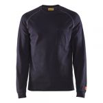 The Blåkläder 3493 FR Light Long Sleeve T-shirt is designed for comfort and safety in warmer conditions. Made of 6.5 oz flame-resistant cotton interlock, this lightweight CAT 2 garment provides arc flash protection while allowing breathability and layering flexibility. With an ATPV rating of 9.1 cal/cm² and compliance to NFPA, CSA, and ASTM standards, it offers dependable protection against thermal and electrical hazards. Functional details include a rib-knit neck, knit cuffs, chest pocket, and contrasting seams, making it both practical and comfortable for everyday use.
